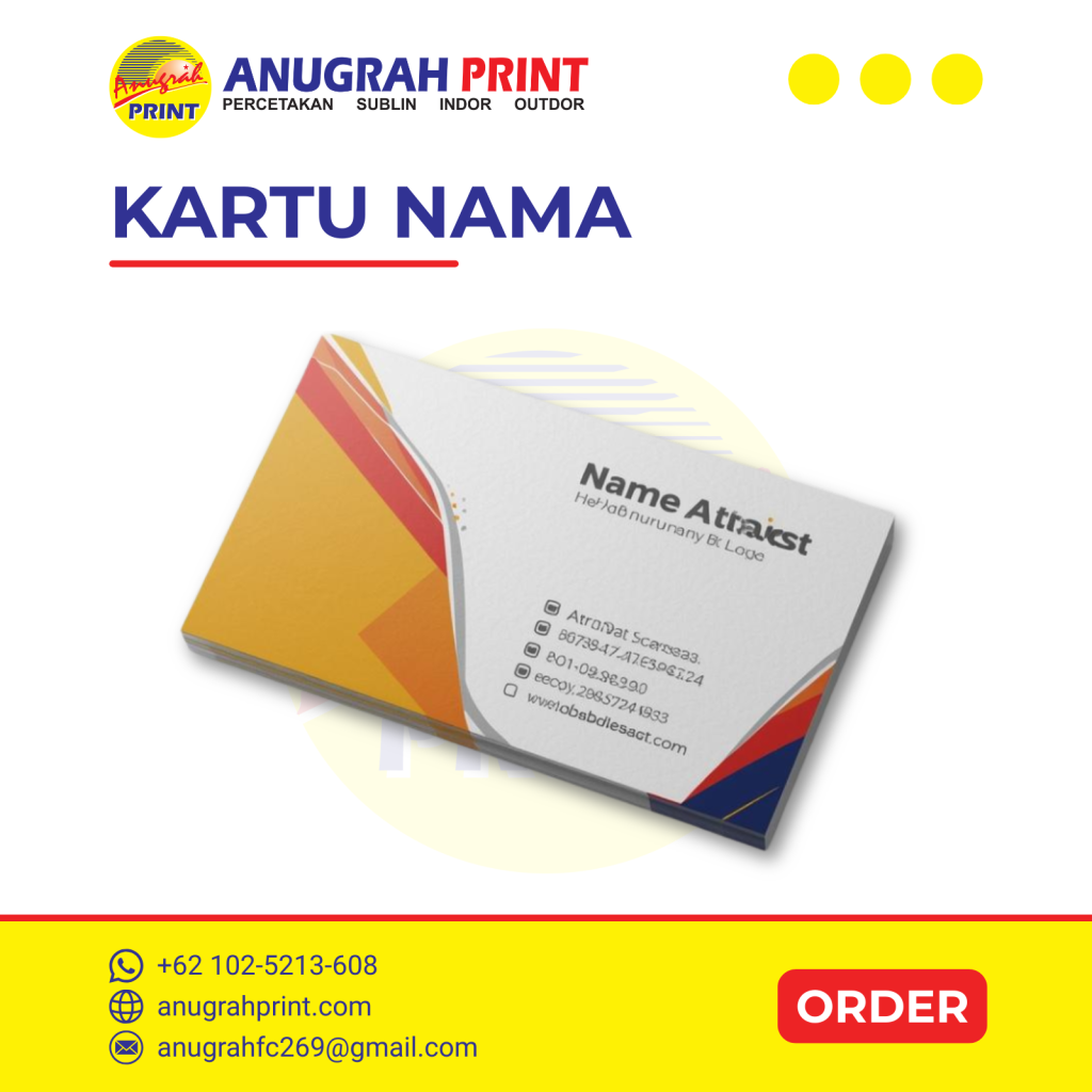 Kartu nama adalah identitas bisnis yang penting saat bertemu klien atau relasi. Dengan desain menarik dan kualitas cetak yang baik, kartu nama dapat:
