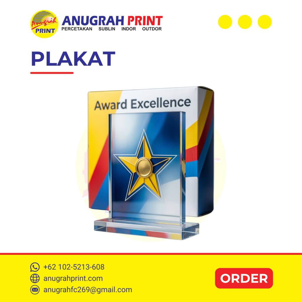Plakat bukan sekadar benda pajangan. Plakat berfungsi sebagai simbol apresiasi, penghargaan, dan pencapaian. Karena itu, desain dan kualitas plakat harus terlihat rapi dan profesional. Jika Anda mencari jasa cetak plakat murah di Jakarta dengan hasil yang pantas dan proses jelas, Anugrah Print siap membantu.